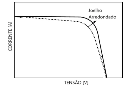 Um joelho arredondado devido ao aumento da resistência em série pode se dar por má conexão, soldas internas dos módulos com problemas ou início de queima dos conectores, por exemplo, que são problemas que podem se tornar críticos com o passar do tempo. O teste de curva I-V em usinas solares pode flagrar esse problema antes que ele se torne mais grave.